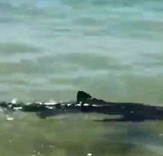 La descrizione dell'evento, pubblicata su un quotidiano online, cita: "Lo squalo caccia vicino a riva: panico tra i bagnanti. In fuga per mettersi in salvo: la corsa dei turisti vicino al Silver Beach Towers resort di Destin, in Florida (Usa), mentre uno squalo si avvicina pericolosamente alla riva inseguendo una manta". Di cosa si tratta? Di un filmato, girato dall'alto da una videocamera di sorveglianza, dove si vede una coppia di turisti in acqua al centro dell'inquadratura. Alla loro destra una razza (non una manta), alla loro sinistra uno squalo (si direbbe un martello). La razza si fa i fatti propri, lo squalo martello anche (salvo cacciare un paio di pesci che si aggirano nei pressi della riva) e i turisti, probabilmente avvisati dell'avvistamento, si allontanano dall'area, senza che il "terribile" predatore li consideri minimamente.